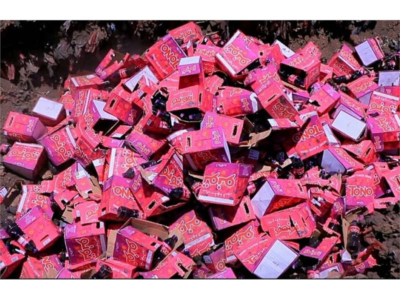 - إتلاف: شراب بنكهة التوت - الكمية: 633 كرتون - بلد المنشأ : السعودية - سبب الإتلاف: مخالف للمواصفات القياسية المعتمده من حيث إرتفاع اللون الاصطناعي الكارموزين (122) - تنفيذ : فرع صعده بالتعاون مع الجهات المعنية.