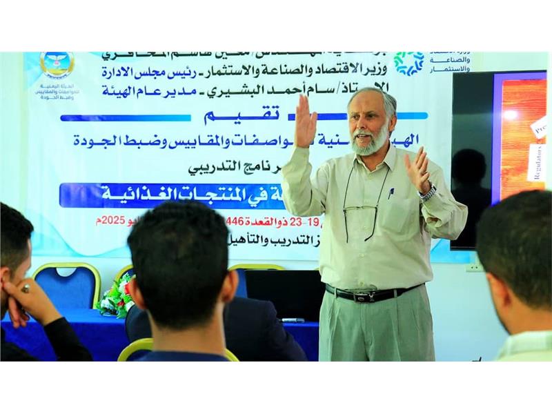 دشنت الهيئة اليمنية للمواصفات والمقاييس وضبط الجودة اليوم بصنعاء برنامج تدريبي نوعي حول المواد المضافة في منتجات الغذاء يهدف البرنامج الذي ينظمه مركز التدريب والتأهيل بالهيئة على مدى خمسة أيام إلى رفد 25 متدربا من المختصين العاملين لدى الهيئة والشركات الخاصة بالصناعات الغذائية لتنمية معارفهم ومهاراتهم حول المواد المضافة في منتجات الغذاء. وفي افتتاح البرنامج التدريبي أكد مدير عام الهيئة التنفيذي أ / سام أحمد البشيري على أهمية إقامة هذا البرامج التدريبية الذي تأتى فى إطار الخطة التدريبية للعام 2025م وذلك من اجل تعزيز قدرات المشاركين حول مفهوم وتصنيف المواد المضافة في منتجات الغذاء ومجالات إستعمالها ومنافعها ومخاطرها المحتمله وطرق الكشف وتقدير المواد المضافة في الغذاء ولفت إلى أن البرنامج سيحتوى على عدد من المحاور منها أهمية المضافات الغذائية ومجالات إستعمالها في قطاع التصنيع الغذائي والتشريعات المنظمة لإستعمالها ومستوى وعي المستهلك حول مضافات الغذاء. وحث البشيري المشاركين على أهمية دراسات المضافات الغذائية في المنتجات والتأكد من مدى ملائمتها للتشريعات الإسلامية لتكون عند مستوى الجودة المنشودة منوها" إلى أن المتوقع من مخرجات البرنامج هو قدرة المشاركين على تحقيق منافع للمشتغلين في قطاع التصنيع الغذائي حال إستخدامهم المضافات الغذائية، بما يضمن مأمونية سلامة منتجات الغذاء من أجل حماية صحة وسلامة المستهلك. هذا وقد حضر تدشين البرنامج الذي يحاضر فيه أ. د. عبد الجليل درهم سعيد غالب والمهندس أبو الحسن النهاري نائب مدير عام الهيئة لشؤون المواصفات والبحث والتطوير والأستاذ محمد على عاطف نائب مدير دائرة التفتيش الفني