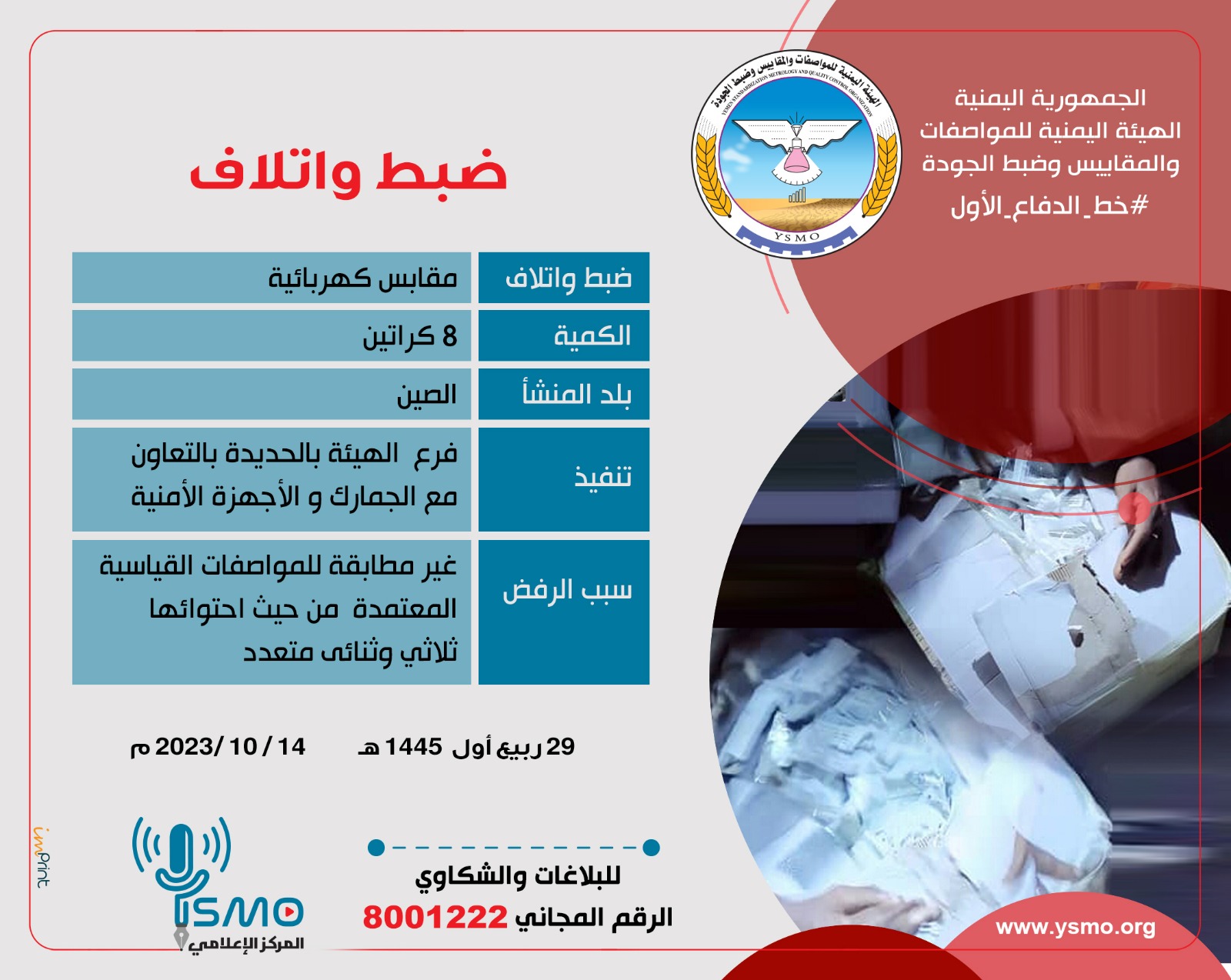 #المركز_الإعلامي: ــــــــــــــــــــــــــــــــــــــــــــــــ - إتلاف : مقابس كهربائية - الكمية: 8 كراتين - بلد المنشأ : الصين - تنفيذ : ف إقراء المزيد