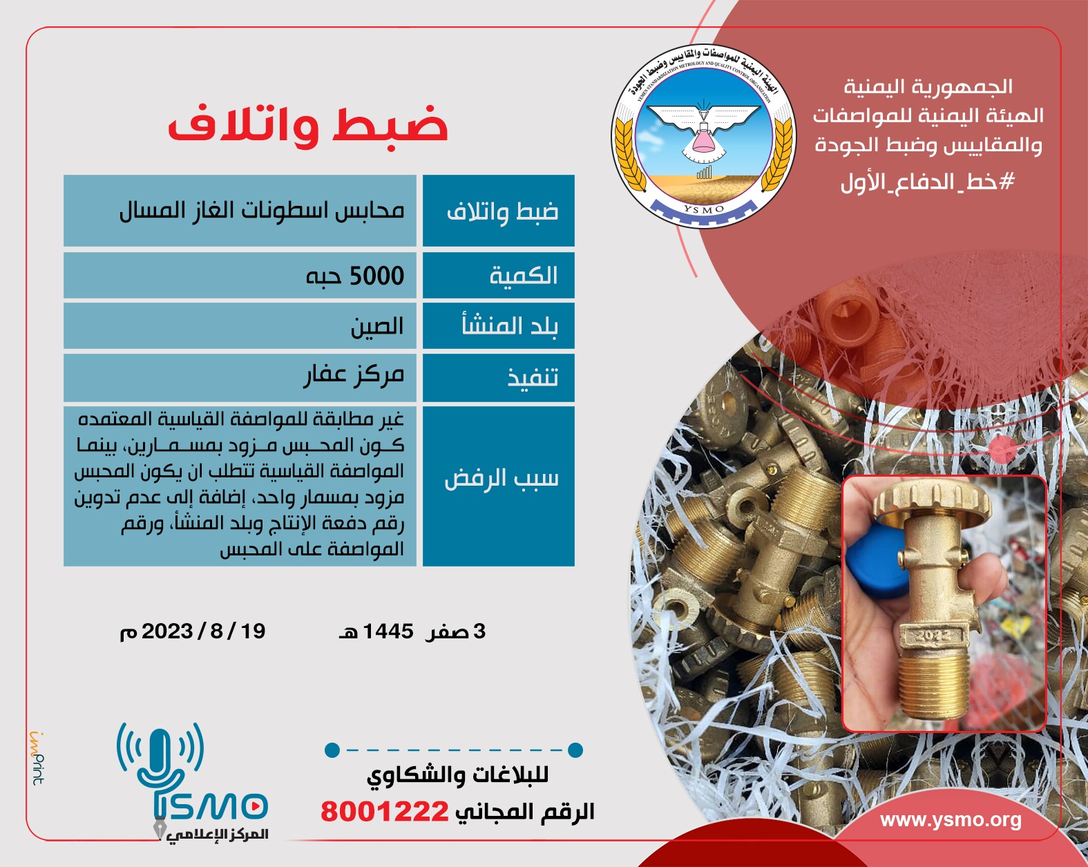 #المركز_الإعلامي: ــــــــــــــــــــــــــــــــــــــــــــــــ - إتلاف : محابس اسطونات الغاز المسال. - الكمية: 5000 حبه. - بلد المنشأ : الصي إقراء المزيد