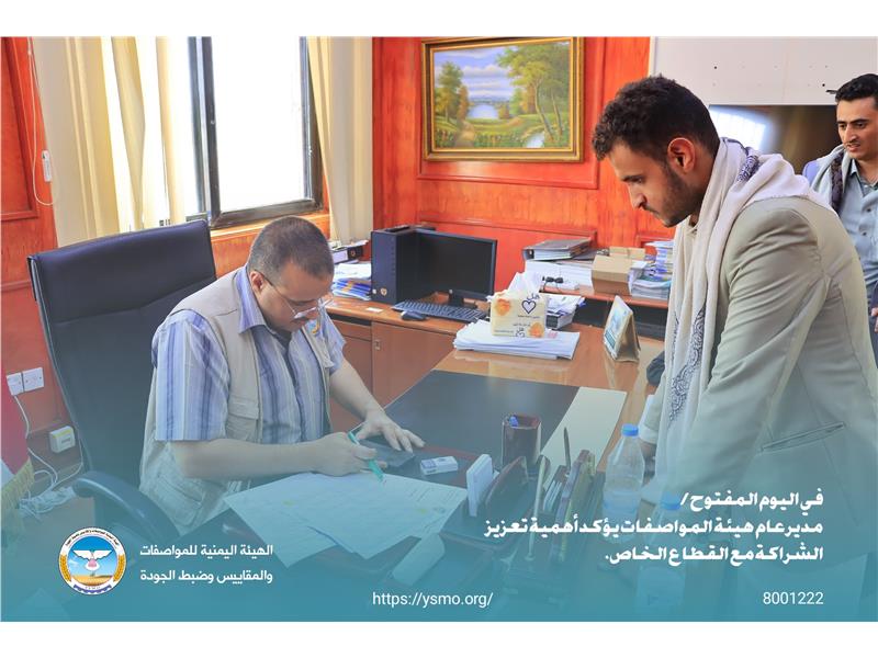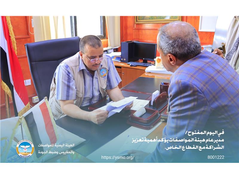 إلتقى المدير العام التنفيذي للهيئة اليمنية للمواصفات والمقاييس وضبط الجودة أ/ سام أحمد البشيري في اليوم المفتوح عددا من المواطنين والقطاع التجاري والص إقراء المزيد