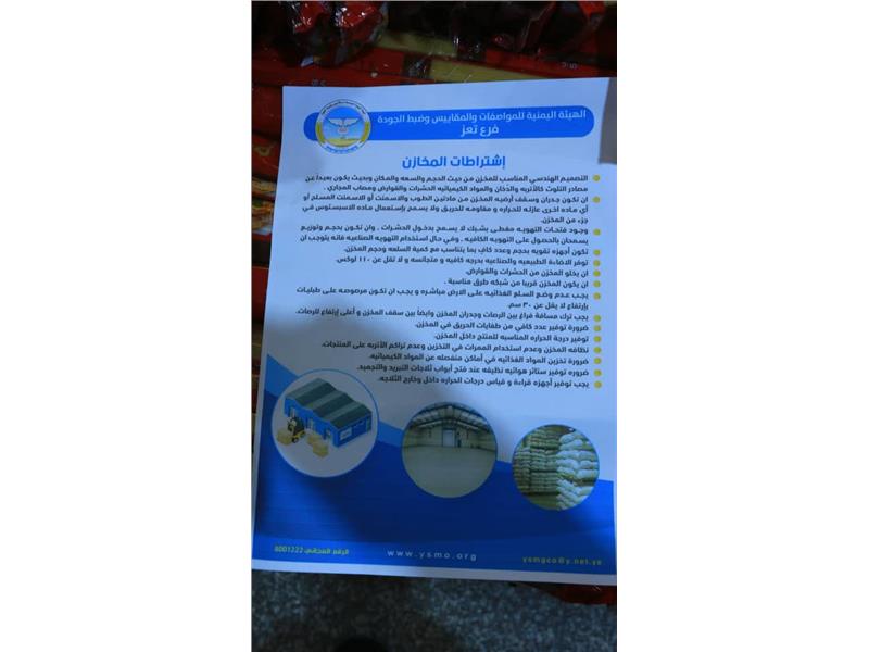 دشن فرع الهيئة اليمنية للمواصفات والمقاييس وضبط الجودة بمحافظة تعز اليوم ، النزول الميداني للرقابة على المنتجات الغذائية والتوعية بالاشترطات العرض وا إقراء المزيد