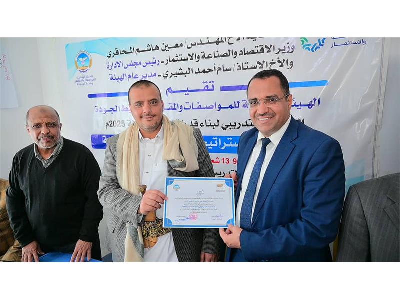 إختتمت الهيئة اليمنية للمواصفات والمقاييس وضبط الجودة اليوم بصنعاء البرنامج التدريبي الخاص بالتخطيط الإستراتيجي وصياغة الإستراتيجية. هدف البرنامج إقراء المزيد