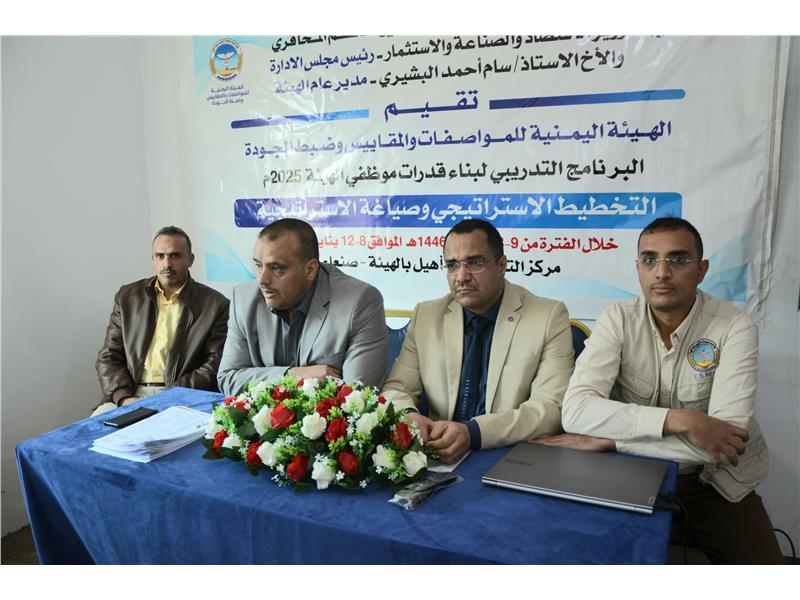 نظم مركز التدريب والتأهيل بالهيئة اليمنية للمواصفات والمقاييس وضبط الجودة بصنعاء برنامج تدريبي خاص بالتحليل الإستراتيجي وصياغة الإستراتيجية. هدف إقراء المزيد