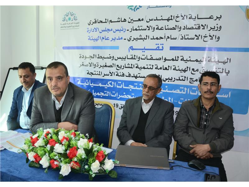 نظم مركز التدريب والتأهيل بالهيئة اليمنية للمواصفات والمقاييس وضبط الجودة بصنعاء برنامج تدريبي خاص بأسس تصنيع المنتجات الكيميائية . هدف البرنام إقراء المزيد