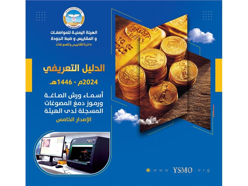 أصدرت الهيئة اليمنية للمواصفات والمقاييس وضبط الجودة الدليل التعريفي بأسماء ورش الصاغة ورموز دمغ المصوغات المسجلة لديها. وأوضح المدير العام التنفي إقراء المزيد