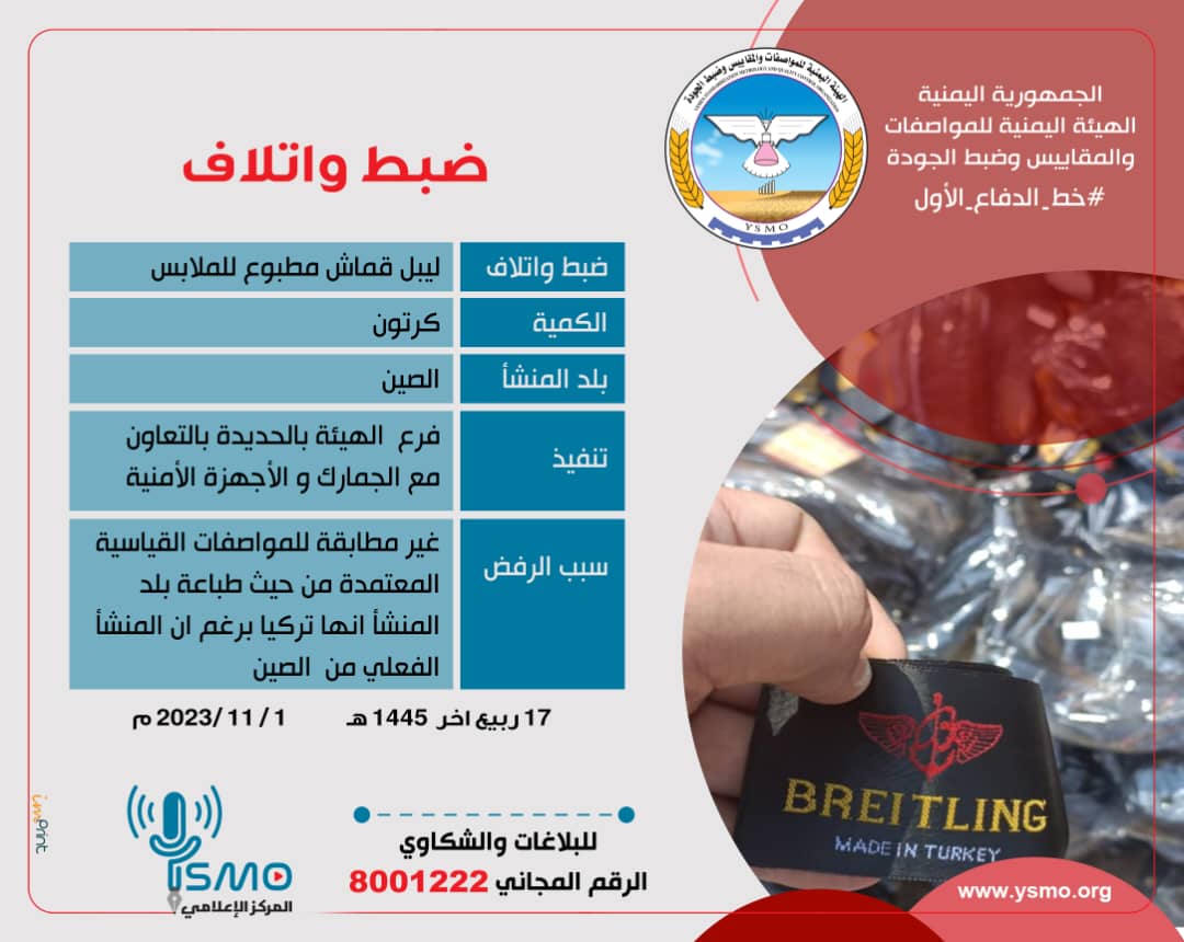 #المركز_الإعلامي: ــــــــــــــــــــــــــــــــــــــــــــــــ - إتلاف : ليبل قماش مطبوع للملابس - الكمية:كرتون - بلد المنشأ : الصين - تنفي إقراء المزيد