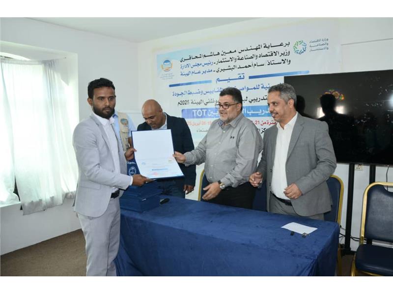 إختتم اليوم بصنعاء البرنامج التدريبي الخاص بإعداد تدريب المدربين والذي نظمه مركز التدريب والتأهيل بالهيئة اليمنية للمواصفات والمقاييس وضبط الجودة. إقراء المزيد